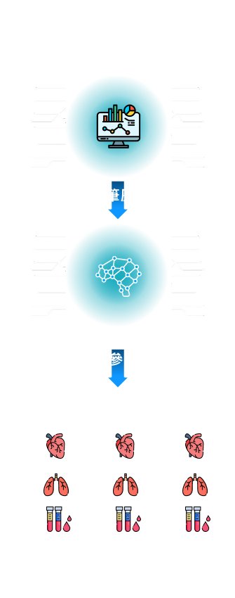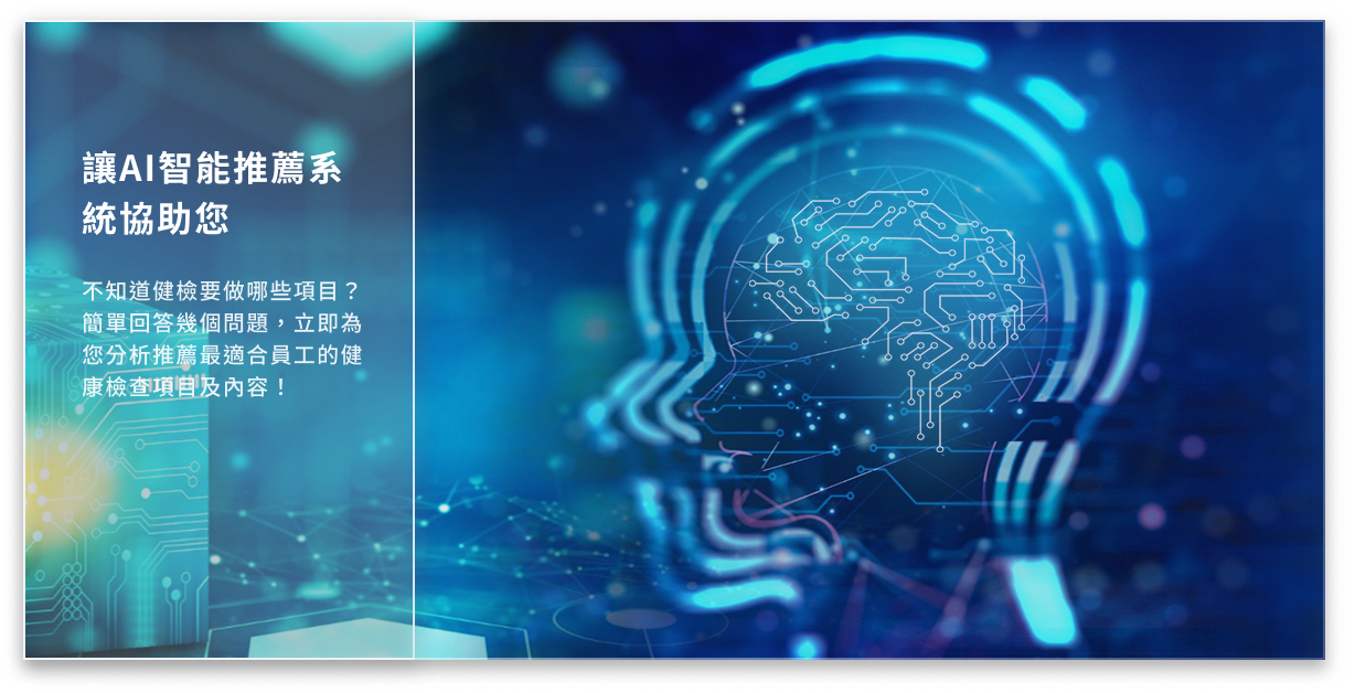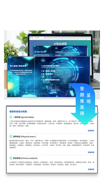 AI精準健康檢查組合推薦方案、慢性疾病風險預測、生理年齡分析等AI智能性服務。