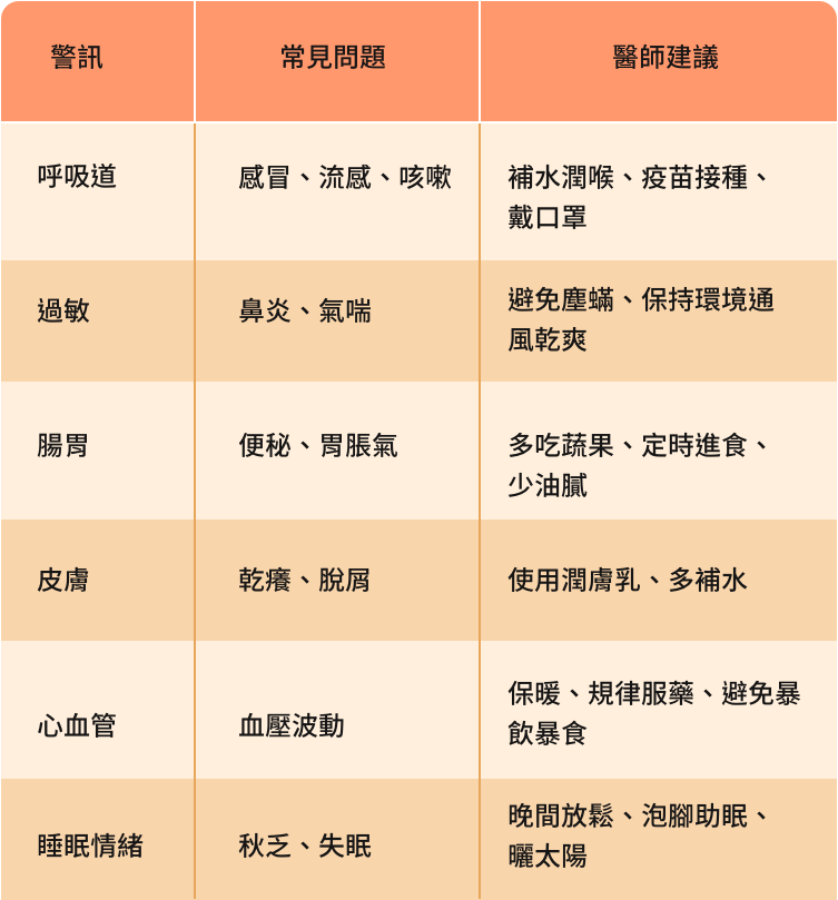 這些都可能是身體「秋季失衡」的警訊,應及早就醫。